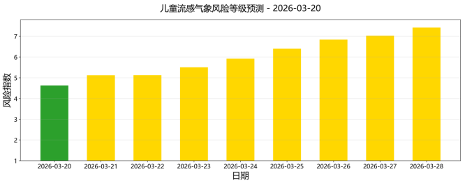 图1 2026年3月20日至28日天津市儿童流感餍足风险指数预测趋势