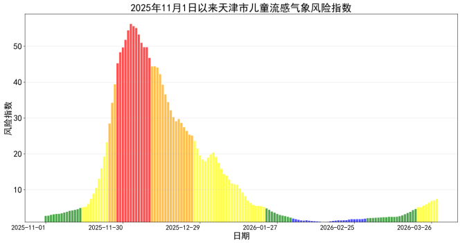 图2 2025年11月以来天津市儿童流感餍足风险指数变化趋势