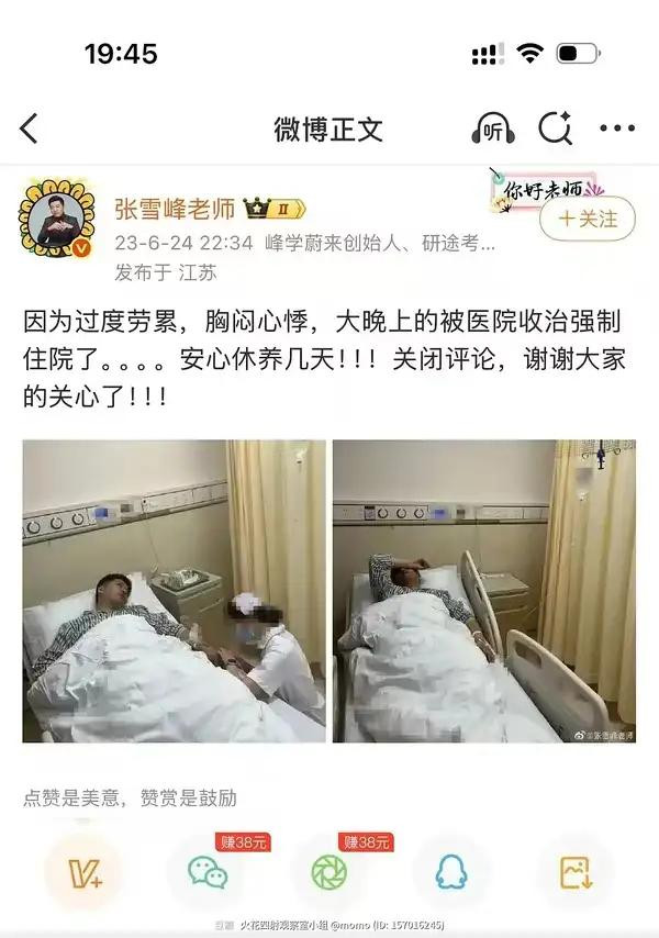 他的肉体蓝本就不算好,2023年就因为累得不可、胸闷心慌,被病院强制条目入院了。