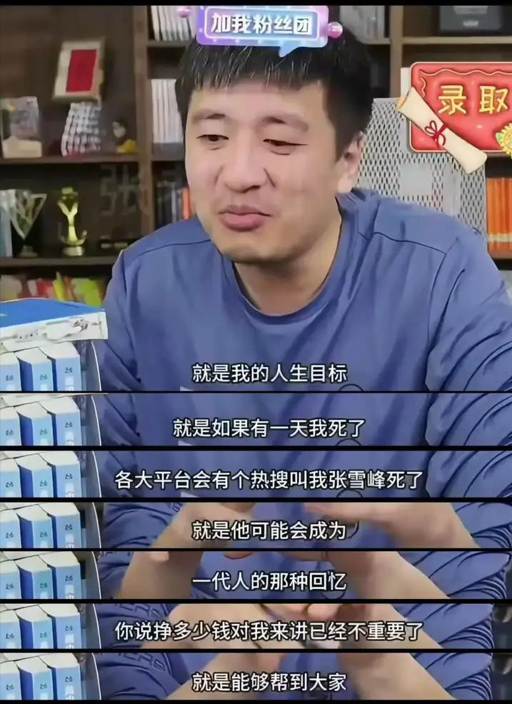 “若是有一天我死了,各大平台会有个热搜,叫张雪峰死了,他可能会成为一代东说念主的回忆。