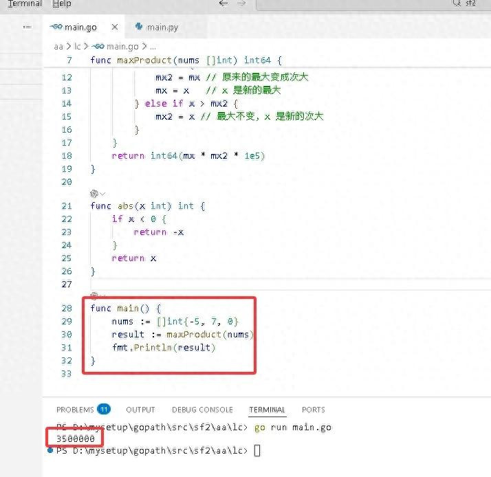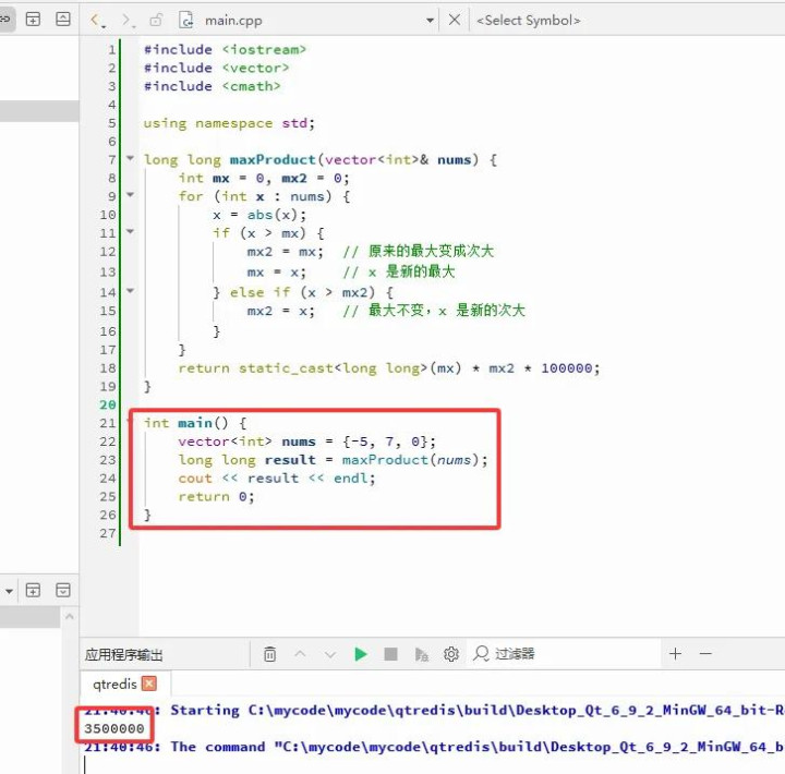 3. 联结咱们的替换操作:替换出一个 ±100000 后,只需要找数组中另外两个阔气值最大的数,三者相乘便是最大乘积。