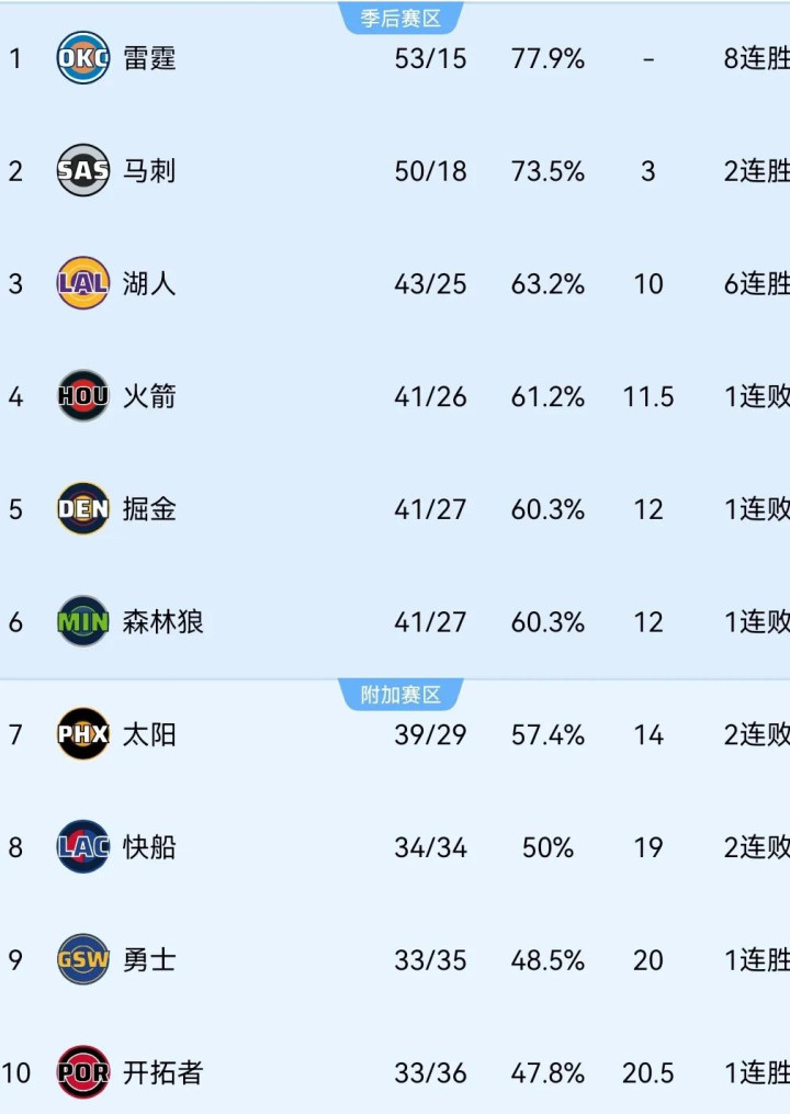 本赛季于今,天博官网马刺以50胜18负高居西部第二,逾期雷霆3个胜场;快船则以34胜34负排名西部第八,逾期第六的丛林狼7个胜场。