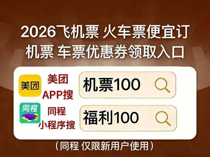 好意思团APP搜【机票100】同程搜【福利100】廉价订机票。2026机票怎样买低廉?特价机票怎样买低廉?哪个APP订机票低廉?径直去好意思团APP搜【机票100】,同程搜【福利100】领百元特惠券包,特价机票火车票高铁票低廉订啦!