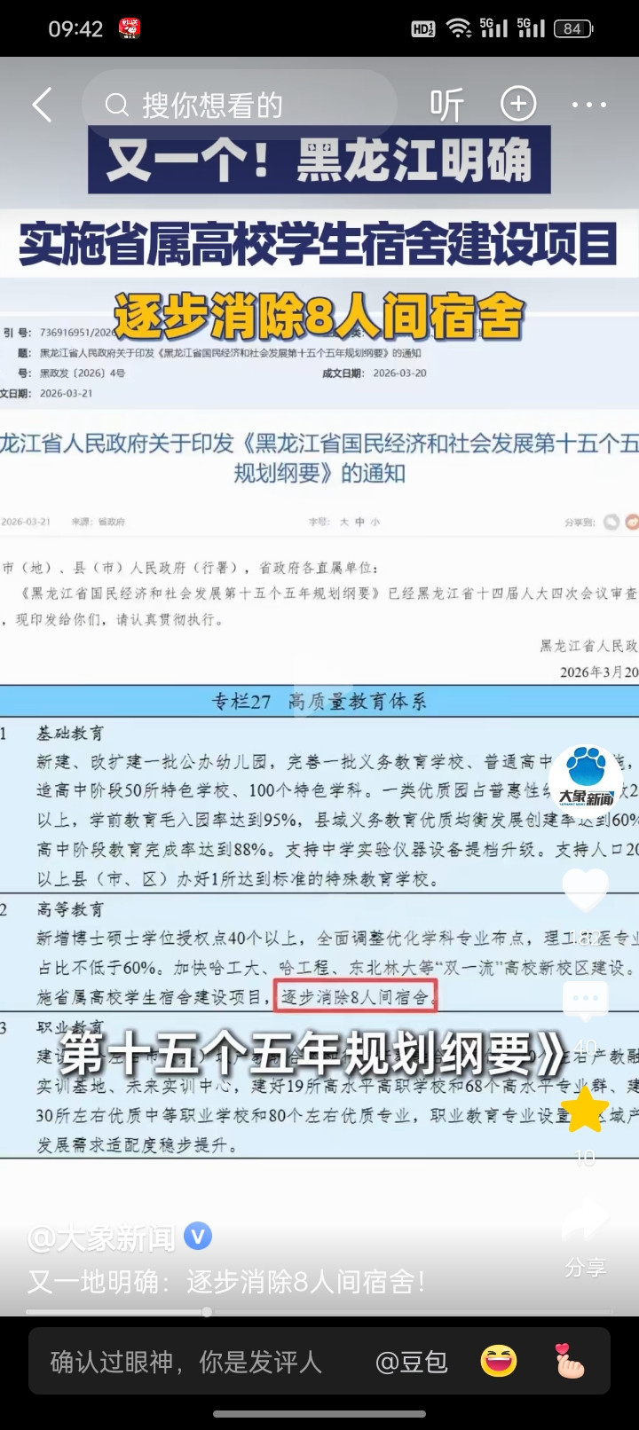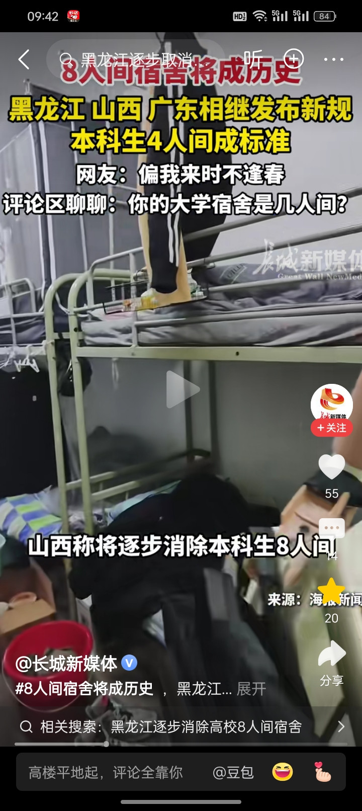最近两天,一条对于黑龙江省官方论说内部提到为接下来的本科大学寝室确立花式当中,取消寝室8东谈主间的圭臬,激励大家的柔软和热议。